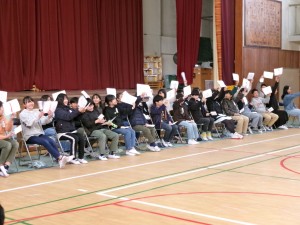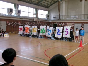 それぞれの学年から歌や呼びかけ、クイズなどのプレゼントを贈りました。